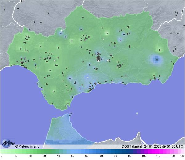 | Almeria-Los Molinos | 34 | 13,2 | 13,3 | 8,3 | 52 | 78 | 42 | 1.007 | 1.007 | 999 | 5 W | 31 | - | 48,6 | |