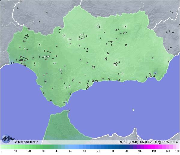 | Moguer - Los Molinos | 50 | 9,4 | 10,2 | 9,4 | 88 | 88 | 87 | 1.018 | 1.018 | 1.018 | 9 WNW | 35 | - | 210,0 | |