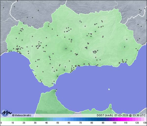 | Huércal de Almería | 123 | 16,8 | 16,8 | 8,5 | 63 | 81 | 52 | 1.016 | 1.017 | 1.014 | 15 SW | 22 | - | 72,0 | |