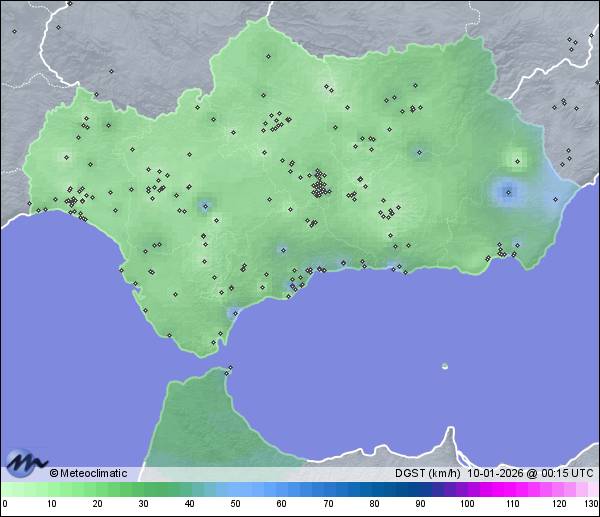 | Barbate (plaza abastos) | 16 | 9,3 | 13,0 | 8,3 | 91 | 93 | 86 | 1.029 | 1.029 | 1.028 | 3 N | 13 | - | 78,7 | |