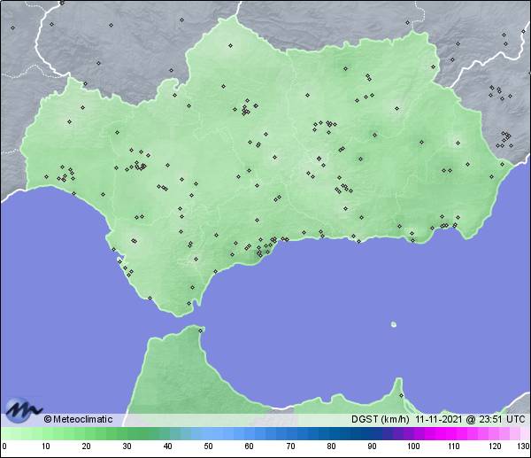 | 11-11-2021 | | | Máx. | Mín. | | | Temperatura | 19,2 | 14,3 | °C | | Humedad | 91 | 45 | % | | Viento | 35 | n/a | km/h | | Presión | 1.019 | 1.016 | hPa | | Precipitación | 0,0 | mm |