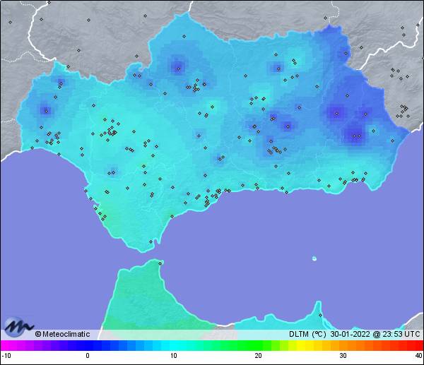 | 30-01-2022 | | | Máx. | Mín. | | | Temperatura | 16,8 | 10,5 | °C | | Humedad | 41 | 23 | % | | Viento | 48 | n/a | km/h | | Presión | 1.029 | 1.026 | hPa | | Precipitación | 0,0 | mm |