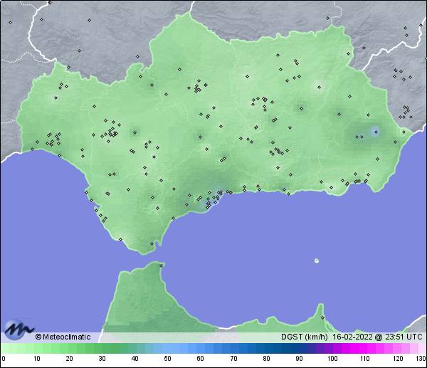 | 16-02-2022 | | | Máx. | Mín. | | | Temperatura | 18,2 | 11,5 | °C | | Humedad | 58 | 21 | % | | Viento | 63 | n/a | km/h | | Presión | 1.030 | 1.026 | hPa | | Precipitación | 0,0 | mm |