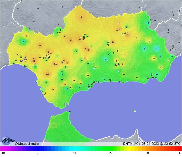 | 08-04-2023 | | | Máx. | Mín. | | | Temperatura | 30,4 | 9,7 | °C | | Humedad | 46 | 12 | % | | Viento | 25 | n/a | km/h | | Presión | 1.017 | 1.013 | hPa | | Precipitación | 0,0 | mm |