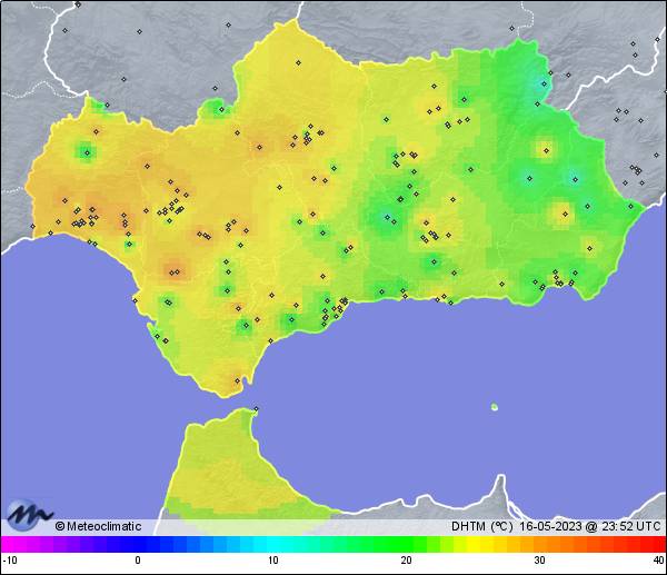 | 16-05-2023 | | | Máx. | Mín. | | | Temperatura | 29,3 | 15,4 | °C | | Humedad | 82 | 13 | % | | Viento | 35 | n/a | km/h | | Presión | 1.017 | 1.011 | hPa | | Precipitación | 0,0 | mm |