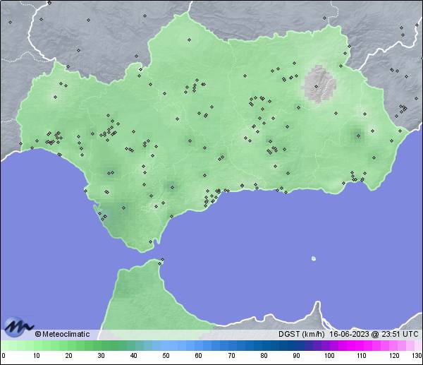 | 16-06-2023 | | | Máx. | Mín. | | | Temperatura | 38,8 | 20,4 | °C | | Humedad | 80 | 23 | % | | Viento | 35 | n/a | km/h | | Presión | 1.015 | 1.011 | hPa | | Precipitación | 0,0 | mm |