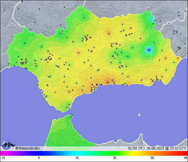 | 26-08-2023 | | | Máx. | Mín. | | | Temperatura | 39,4 | 24,9 | °C | | Humedad | 44 | 18 | % | | Viento | 32 | n/a | km/h | | Presión | 1.012 | 1.009 | hPa | | Precipitación | 0,0 | mm |