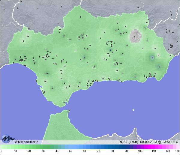 | 09-09-2023 | | | Máx. | Mín. | | | Temperatura | 29,6 | 19,4 | °C | | Humedad | 94 | 49 | % | | Viento | 34 | n/a | km/h | | Presión | 1.017 | 1.015 | hPa | | Precipitación | 0,0 | mm |