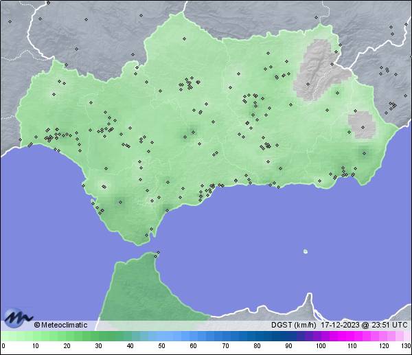 | 17-12-2023 | | | Máx. | Mín. | | | Temperatura | 16,3 | 4,9 | °C | | Humedad | 10 | 10 | % | | Viento | 22 | n/a | km/h | | Presión | 1.035 | 1.033 | hPa | | Precipitación | 0,0 | mm |