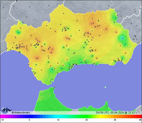 | 05-04-2024 | | | Máx. | Mín. | | | Temperatura | 32,8 | 9,2 | °C | | Humedad | 96 | 31 | % | | Viento | 35 | n/a | km/h | | Presión | 1.014 | 1.007 | hPa | | Precipitación | 0,2 | mm |