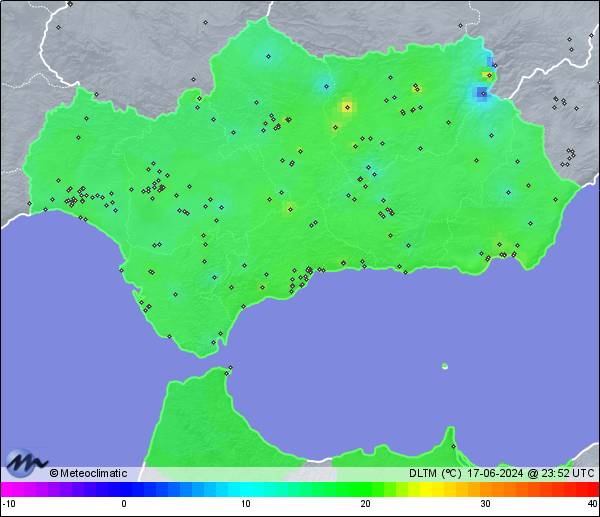 | 17-06-2024 | | | Máx. | Mín. | | | Temperatura | 32,4 | 16,3 | °C | | Humedad | 78 | 31 | % | | Viento | 40 | n/a | km/h | | Precipitación | 0,0 | mm |