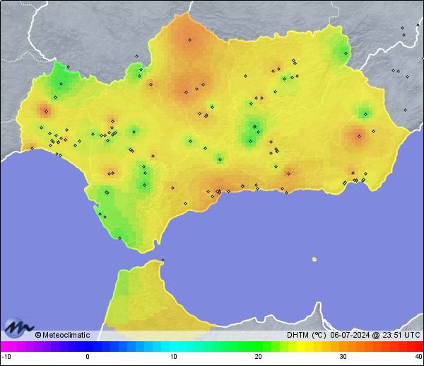 | 06-07-2024 | | | Máx. | Mín. | | | Temperatura | 33,0 | 19,7 | °C | | Humedad | 80 | 33 | % | | Viento | 36 | n/a | km/h | | Presión | 1.008 | 1.004 | hPa | | Precipitación | 0,0 | mm |