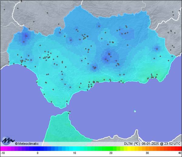| 06-01-2025 | | | Máx. | Mín. | | | Temperatura | 17,3 | 11,9 | °C | | Humedad | 95 | 58 | % | | Viento | 32 | n/a | km/h | | Presión | 1.020 | 1.007 | hPa | | Precipitación | 5,8 | mm |