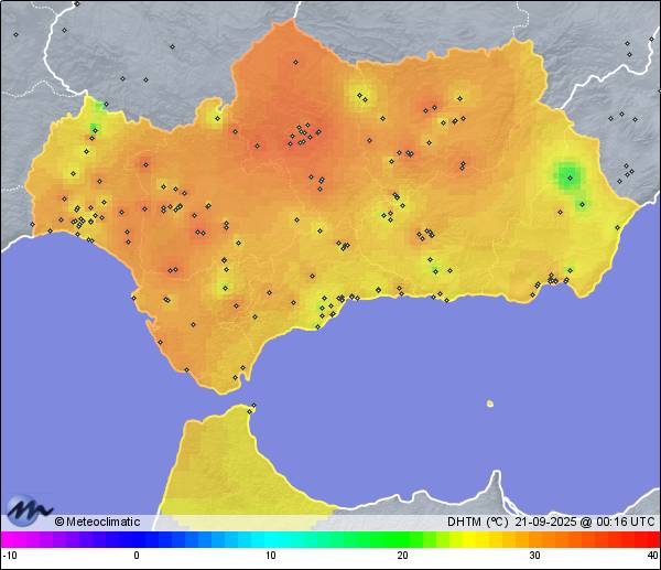 | 20-09-2025 | | | Máx. | Mín. | | | Temperatura | 34,4 | 23,6 | °C | | Humedad | 64 | 32 | % | | Viento | 33 | n/a | km/h | | Presión | 1.019 | 1.015 | hPa | | Precipitación | 0,0 | mm |