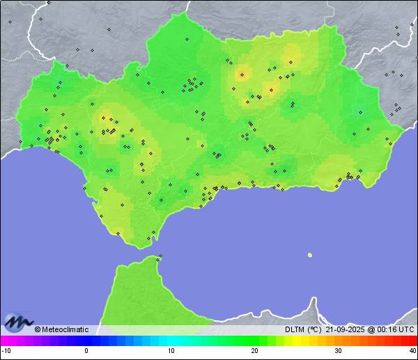 | 20-09-2025 | | | Máx. | Mín. | | | Temperatura | 35,2 | 21,9 | °C | | Humedad | 68 | 29 | % | | Viento | 28 | n/a | km/h | | Presión | 1.019 | 1.015 | hPa | | Precipitación | 0,0 | mm |