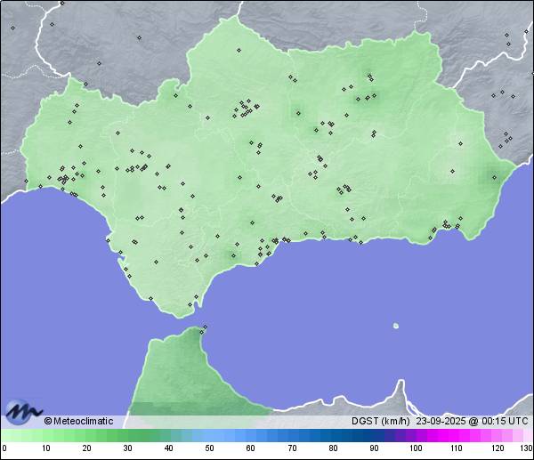 | 22-09-2025 | | | Máx. | Mín. | | | Temperatura | 28,8 | 18,1 | °C | | Humedad | 55 | 21 | % | | Viento | 23 | n/a | km/h | | Presión | 1.016 | 1.012 | hPa | | Precipitación | 0,0 | mm |