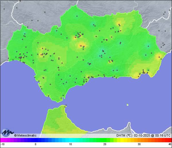 | 01-10-2025 | | | Máx. | Mín. | | | Temperatura | 31,7 | 16,2 | °C | | Humedad | 89 | 34 | % | | Viento | 15 | n/a | km/h | | Presión | 1.021 | 1.017 | hPa | | Precipitación | 0,0 | mm |