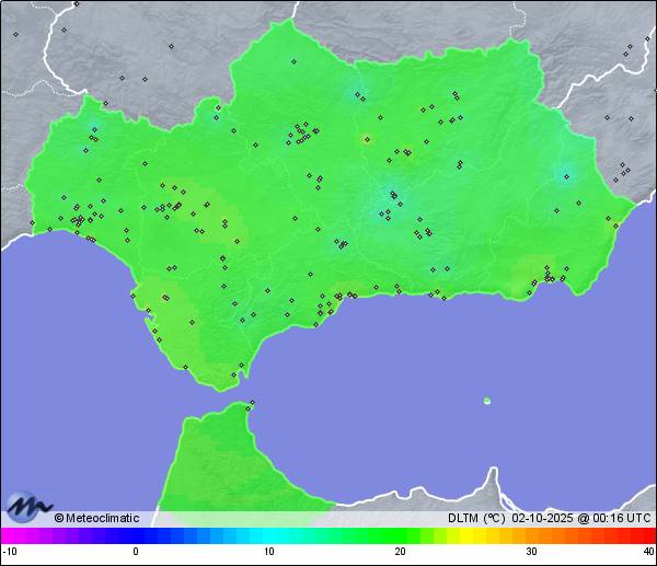 | 01-10-2025 | | | Máx. | Mín. | | | Temperatura | 31,7 | 16,2 | °C | | Humedad | 89 | 34 | % | | Viento | 15 | n/a | km/h | | Presión | 1.021 | 1.017 | hPa | | Precipitación | 0,0 | mm |