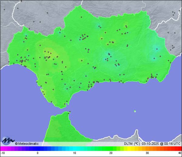 | 02-10-2025 | | | Máx. | Mín. | | | Temperatura | 34,0 | 16,9 | °C | | Humedad | 90 | 36 | % | | Viento | 13 | n/a | km/h | | Presión | 1.022 | 1.018 | hPa | | Precipitación | 0,0 | mm |
