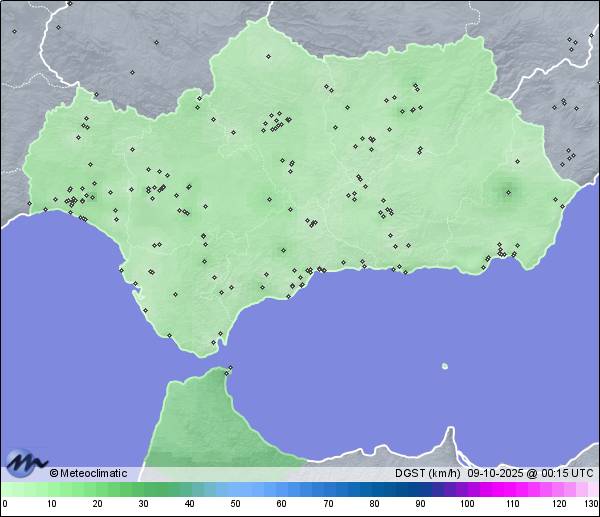 | 08-10-2025 | | | Máx. | Mín. | | | Temperatura | 24,6 | 18,3 | °C | | Humedad | 95 | 64 | % | | Viento | 28 | n/a | km/h | | Presión | 1.021 | 1.017 | hPa | | Precipitación | 0,0 | mm |