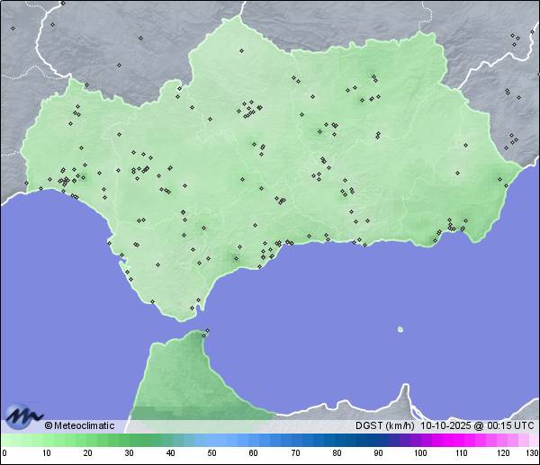 | 09-10-2025 | | | Máx. | Mín. | | | Temperatura | 25,9 | 19,2 | °C | | Humedad | 75 | 47 | % | | Viento | 30 | n/a | km/h | | Presión | 1.017 | 1.014 | hPa | | Precipitación | 0,0 | mm |