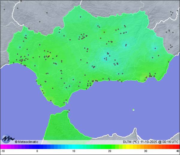 | 10-10-2025 | | | Máx. | Mín. | | | Temperatura | 24,6 | 15,8 | °C | | Humedad | 83 | 45 | % | | Viento | 39 | n/a | km/h | | Presión | 1.021 | 1.018 | hPa |
