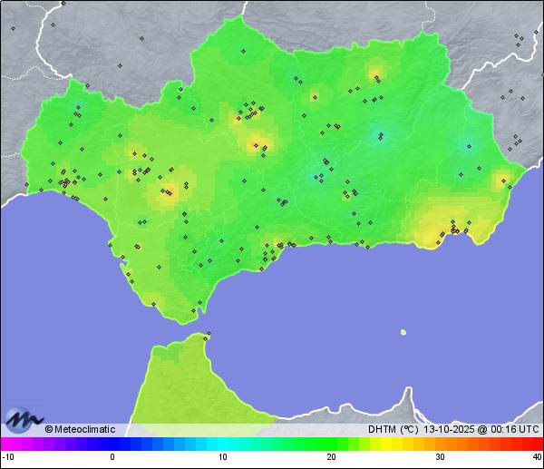 12-10-2025 | | Máx. | Mín. | | Temperatura | 29,9 | 16,9 | °C | Humedad | 74 | 41 | % | Viento | 22 | n/a | km/h | Presión | 1.020 | 1.016 | hPa | Precipitación | 0,0 | mm |