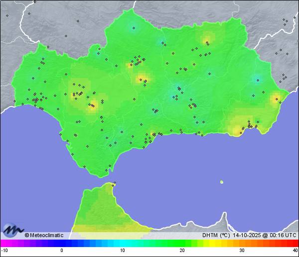 13-10-2025 | | Máx. | Mín. | | Temperatura | 29,7 | 16,4 | °C | Humedad | 79 | 44 | % | Viento | 17 | n/a | km/h | Presión | 1.018 | 1.015 | hPa | Precipitación | 0,0 | mm |