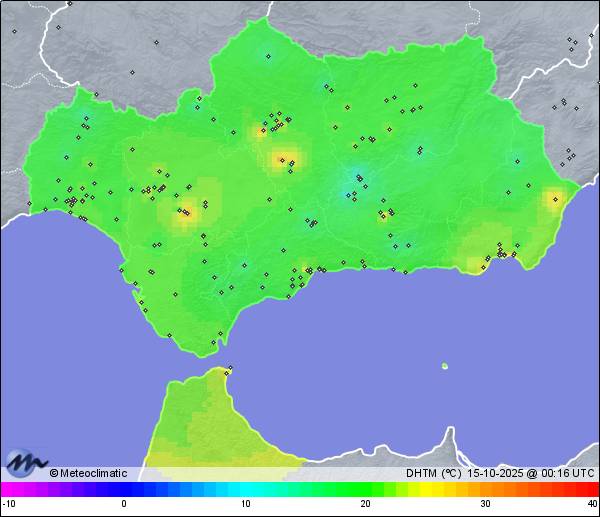 14-10-2025 | | Máx. | Mín. | | Temperatura | 31,8 | 17,0 | °C | Humedad | 88 | 38 | % | Viento | 15 | n/a | km/h | Presión | 1.020 | 1.016 | hPa | Precipitación | 0,0 | mm |