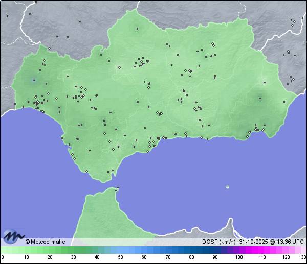 | Act. | Máx. | Mín. | Act. | Máx. | Mín. | Act. | Máx. | Mín. | Act. | Máx.  | Hoy | Año |  |  | Vélez-Málaga - La Mata | 40 | 16,5 | 19,4 | 16,6 | 85 | 85 | 74 | 1.013 | 1.013 | 1.012 | 11 NNW | 18 | - | 22,1 |  |  |  | Frigiliana | 326 | 17,0 | 19,2 | 17,0 | 76 | 77 | 67 | 1.018 | 1.018 | 1.017 | 8 N | 15 | - | 490,8 |  |  |  | Nerja - Las Palmeras | 26 | 18,1 | 19,6 | 18,0 | 75 | 81 | 69 | 1.017 | 1.018 | 1.017 | - | 15 | - | 390,1 |  |  |  | Alhaurín el Grande | 315 | 15,8 | 17,8 | 15,7 | 79 | 79 | 74 | 1.017 | 1.017 | 1.016 | 6 WNW | 14 | - | 426,4 |  |  |  | Álora - CEIP Las Mellizas | 200 | 14,1 | 16,4 | 14,1 | 81 | 81 | 74 | 1.016 | 1.016 | 1.015 | 3 NW | 13 | - | 104,8 |  |  |  | Málaga-Colegio Const-1978 | 5 | 16,7 | 19,6 | 16,7 | 79 | 79 | 70 | 1.017 | 1.018 | 1.016 | 4 WNW | 13 | - | 378,2 |  |  |  | Nueva Málaga | 73 | 17,0 | 20,4 | 17,0 | 77 | 77 | 69 | 1.018 | 1.018 | 1.017 | - | 13 | - | 337,2 |  |  |  | Archidona - Norte | 710 | 14,1 | 15,0 | 13,5 | 73 | 78 | 72 | 1.017 | 1.017 | 1.016 | 2 ESE | 12 | - | 403,5 |  |  |  | Velez-Malaga | 58 | 16,7 | 19,1 | 16,7 | 84 | 84 | 72 | 1.018 | 1.018 | 1.017 | 6 NW | 12 | - | 295,5 |  |  |  | Málaga - Bda. Girón | 5 | 16,9 | 19,8 | 16,9 | 77 | 78 | 68 | 1.018 | 1.018 | 1.017 | 3 NW | 11 | - | 350,8 |  |  |  | Cártama - Sierra Llana | 81 | 14,7 | 19,0 | 14,7 | 93 | 96 | 74 | 1.015 | 1.015 | 1.015 | 5 NNW | 10 | - | 420,4 |  |  |  | Alhaurín de la Torre | 120 | 14,9 | 17,3 | 14,9 | 89 | 90 | 73 | 1.017 | 1.017 | 1.016 | 6 SW | 8 | - | 458,0 |  |  |  | Istán | 327 | 14,6 | 15,7 | 14,6 | 82 | 83 | 79 | 1.017 | 1.017 | 1.017 | 3 NE | 8 | - | 807,0 |  |  |  | Málaga - Universidad | 50 | 16,1 | 18,8 | 16,1 | 86 | 86 | 77 | 1.015 | 1.015 | 1.014 | 3 W | 8 | - | 397,2 |  |  |  | Archidona - PFV Guadacano | 632 | 12,0 | 13,2 | 11,5 | 89 | 91 | 84 | 1.019 | 1.019 | 1.018 | 1 E | 7 | - | 359,4 |  |  |  | La Cala del Moral | 43 | 17,3 | 19,8 | 17,2 | 80 | 83 | 75 | 1.016 | 1.016 | 1.015 | 2 N | 7 | - | 357,5 |  |  |  | Mijas - Los Espartales | 243 | 16,4 | 17,4 | 16,2 | 77 | 84 | 75 | 1.016 | 1.016 | 1.015 | 4 NNW | 7 | - | 604,0 |  |  |  | Ronda - San Cristobal | 744 | 12,1 | 12,9 | 11,7 | 86 | 88 | 81 | 1.008 | 1.009 | 1.008 | 3 SE | 7 | - | 525,0 |  |  |  | Alameda | 443 | 13,8 | 15,1 | 13,4 | x | x | x | 1.019 | 1.020 | 1.019 | - | 6 | - | 516,2 |  |  |  | Benalmádena  Arroyo Miel | 105 | 18,0 | 20,8 | 17,9 | 82 | 82 | 71 | 1.016 | 1.017 | 1.016 | 2 WNW | 6 | - | 436,4 |  |  |  | Archidona - Bda. el Pilar | 709 | 14,3 | 15,2 | 13,6 | 72 | 79 | 71 | 1.018 | 1.019 | 1.018 | 1 ESE | 5 | - | 411,7 |  |  |  | Archidona-Huertas del Río | 500 | 10,2 | 12,9 | 9,9 | 95 | 95 | 92 | 1.015 | 1.015 | 1.014 | - | 5 | - | 416,6 |  |  |  | Málaga - San Antón | 144 | 16,9 | 18,8 | 16,6 | 74 | 75 | 69 | 1.016 | 1.016 | 1.015 | - | 5 | - | 432,3 |  |  |  | Málaga-El Palo-Miraflores | 58 | 16,9 | 19,2 | 16,7 | 82 | 84 | 76 | 1.018 | 1.019 | 1.017 | 2 N | 5 | - | 244,6 |  |  |  | Mijas - Pueblo | 450 | 16,6 | 17,2 | 16,4 | 70 | 74 | 69 | 1.018 | 1.018 | 1.018 | - | 5 | - | 558,0 |  |  |  | Algatocín | 694 | 12,9 | 13,9 | 12,8 | 87 | 88 | 82 | 1.019 | 1.020 | 1.018 | 1 NW | 4 | - | 946,7 |  |  |  | Arroyo de la Miel | 70 | 17,0 | 19,4 | 16,8 | 86 | 87 | 74 | 1.013 | 1.014 | 1.013 | - | 4 | - | 466,3 |  |  |  | Rincón de la Victoria | 33 | 16,3 | 18,2 | 16,3 | 86 | 86 | 80 | 1.018 | 1.019 | 1.018 | - | 4 | x | x |  |  |  | Tolox | 307 | 14,9 | 16,1 | 14,8 | 81 | 82 | 75 | 1.020 | 1.020 | 1.019 | - | 4 | - | 733,2 |  |  |  | La Cala de Mijas | 13 | 15,8 | 16,5 | 14,4 | 87 | 90 | 85 | 1.017 | 1.017 | 1.016 | - | 3 | - | 603,2 |  |  |  | Archidona - Vega | 539 | 9,3 | 11,7 | 9,3 | 98 | 98 | 96 | 1.022 | 1.022 | 1.021 | - | 2 | - | 406,5 |  |  |  | El Colmenar-Las Buitreras | 245 | 12,3 | 13,8 | 12,1 | 93 | 94 | 90 | 1.017 | 1.017 | 1.016 | - | 0 | 0,2 | 785,6 |  |