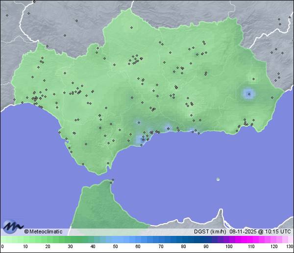| Huércal de Almería | 123 | 14,4 | 16,0 | 12,7 | 62 | 73 | 58 | 1.014 | 1.015 | 1.013 | 7 N | 13 | - | 0,5 | |