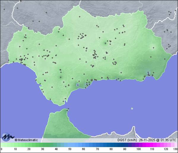 | Huércal de Almería | 123 | 14,6 | 14,8 | 14,6 | 39 | 40 | 39 | 1.019 | 1.019 | 1.019 | 30 NNW | 57 | - | 5,9 | |