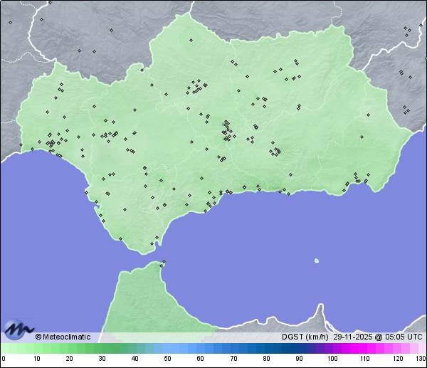 | Huércal de Almería | 123 | 9,0 | 9,8 | 8,6 | 78 | 85 | 77 | 1.020 | 1.021 | 1.019 | 5 NNE | 11 | - | 5,9 | |