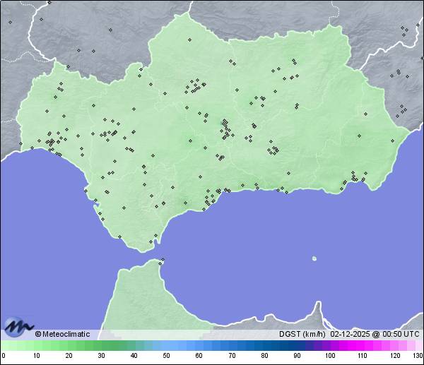 | Huércal de Almería | 123 | 11,1 | 19,2 | 11,1 | 86 | 86 | 46 | 1.019 | 1.021 | 1.016 | 4 N | 5 | - | 5,9 | |
