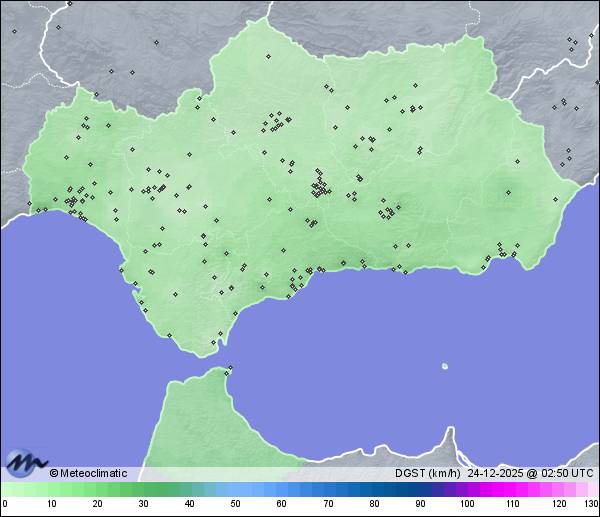 | Purchena | 545 | 9,3 | 9,3 | 8,7 | 76 | 78 | 76 | 1.004 | 1.004 | 1.004 | 7 WNW | 19 | - | 368,5 | |