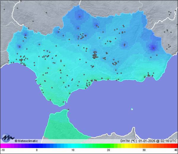 | Aguadulce-Roquetas de Mar | 44 | 12,4 | 12,4 | 12,3 | 68 | 68 | 68 | 1.019 | 1.020 | 1.019 | 2 NNW | 10 | - | - | |