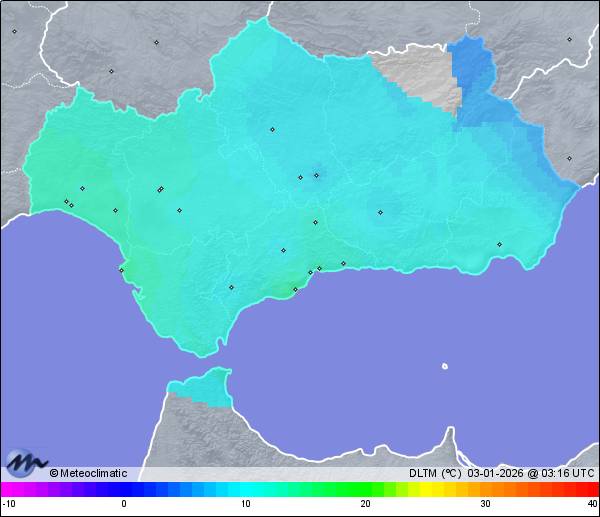 | Córdoba-Cerro Muriano | 513 | 10,9 | 13,7 | 10,9 | 78 | 78 | 66 | 1.002 | 1.003 | 1.001 | 6 WNW | 13 | - | - | |