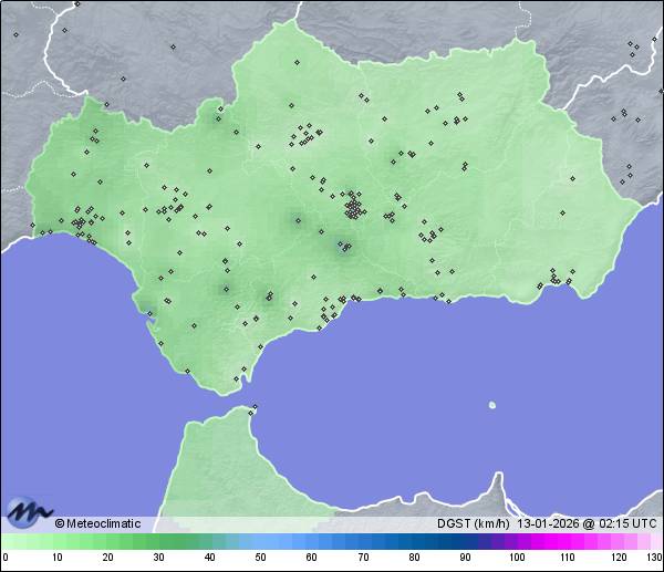 | Jerez Norte | 78 | 12,1 | 12,1 | 12,1 | 87 | 87 | 87 | 1.016 | 1.016 | 1.016 | 3 SSE | 10 | - | 65,4 | |