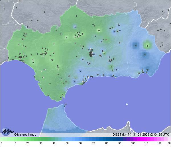 | Huércal de Almería | 123 | 17,1 | 17,5 | 16,9 | 46 | 46 | 43 | 1.008 | 1.008 | 1.008 | 18 WNW | 35 | - | 1,5 | |