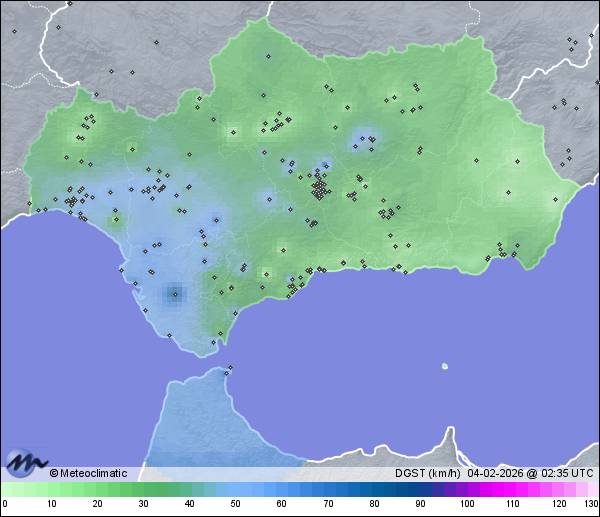 | Zuheros-Los Linares | 931 | 6,9 | 6,9 | 6,0 | 90 | 91 | 89 | 999 | 1.002 | 999 | 39 SSW | 68 | 3,5 | 11,0 | |