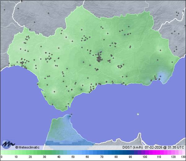 | Carcabuey-Bernabé | 636 | 5,6 | 5,6 | 5,6 | 91 | 91 | 90 | 1.014 | 1.014 | 1.014 | 5 WSW | 20 | 0,5 | 841,5 | |