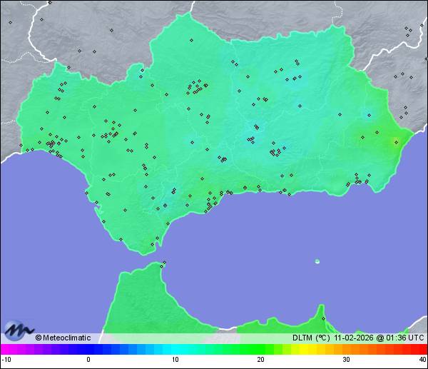 | Córdoba-Cerro Muriano | 513 | 13,3 | 13,6 | 13,3 | 99 | 99 | 99 | 1.016 | 1.016 | 1.016 | 11 WNW | 22 | - | 407,8 | |