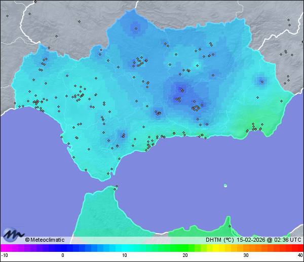 | Huércal de Almería | 123 | 14,3 | 15,5 | 13,8 | 30 | 32 | 26 | 1.022 | 1.023 | 1.022 | 18 NNW | 62 | - | 72,0 | |