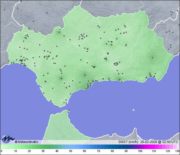 | Huércal de Almería | 123 | 13,1 | 13,9 | 13,1 | 48 | 53 | 43 | 1.026 | 1.027 | 1.026 | 24 NNW | 31 | - | 72,0 | |