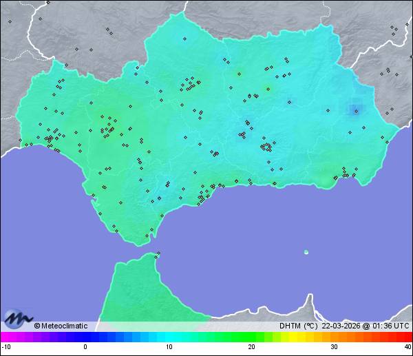 | Almería - La Cañada | 11 | 14,2 | 18,6 | 12,4 | 69 | 70 | 51 | 1.012 | 1.013 | 1.010 | x | x | - | 113,6 | |