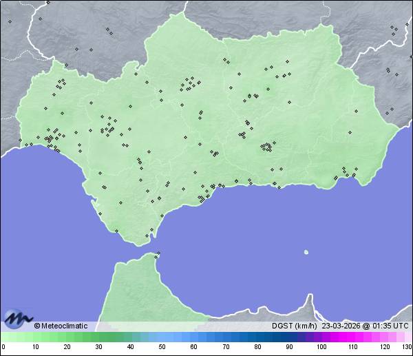 | Huércal de Almería | 123 | 11,4 | 16,7 | 11,3 | 85 | 85 | 55 | 1.012 | 1.013 | 1.011 | 5 NNW | 5 | - | 74,3 | |