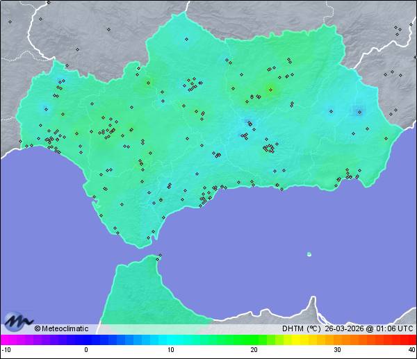 | Actualizado:25-03-2026 23:58 UTC | 13,2°C 76% | 21,9 °C / 88% | | 9,9°C / 43% | | 1.013 hPa |