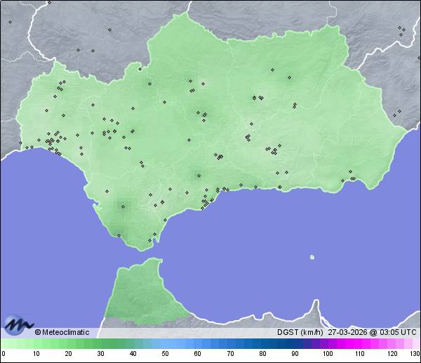 | Huércal de Almería | 123 | 12,6 | 13,1 | 12,5 | 67 | 67 | 62 | 1.016 | 1.016 | 1.015 | 9 NW | 22 | - | 74,3 | |