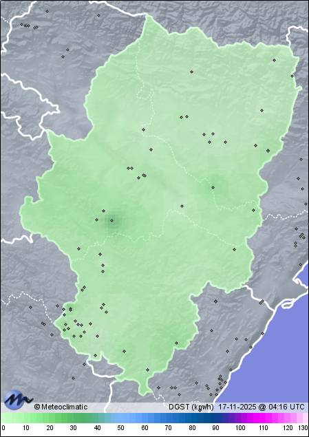 | Guadalaviar | 1519 | 4,9 | 5,2 | 4,7 | 89 | 90 | 89 | 1.013 | 1.014 | 1.013 | 5 NW | 18 | 0,4 | 716,6 | |