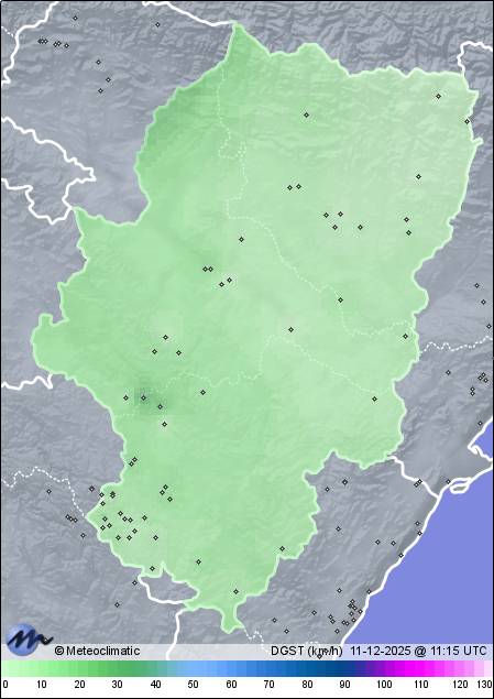 | Actualizado: 10:13 UTC | 9,4°C 89% | 11,0 °C / 92% | | 8,6°C / 86% | | 5 km/h S | | 14 km/h | | 1.025 hPa |